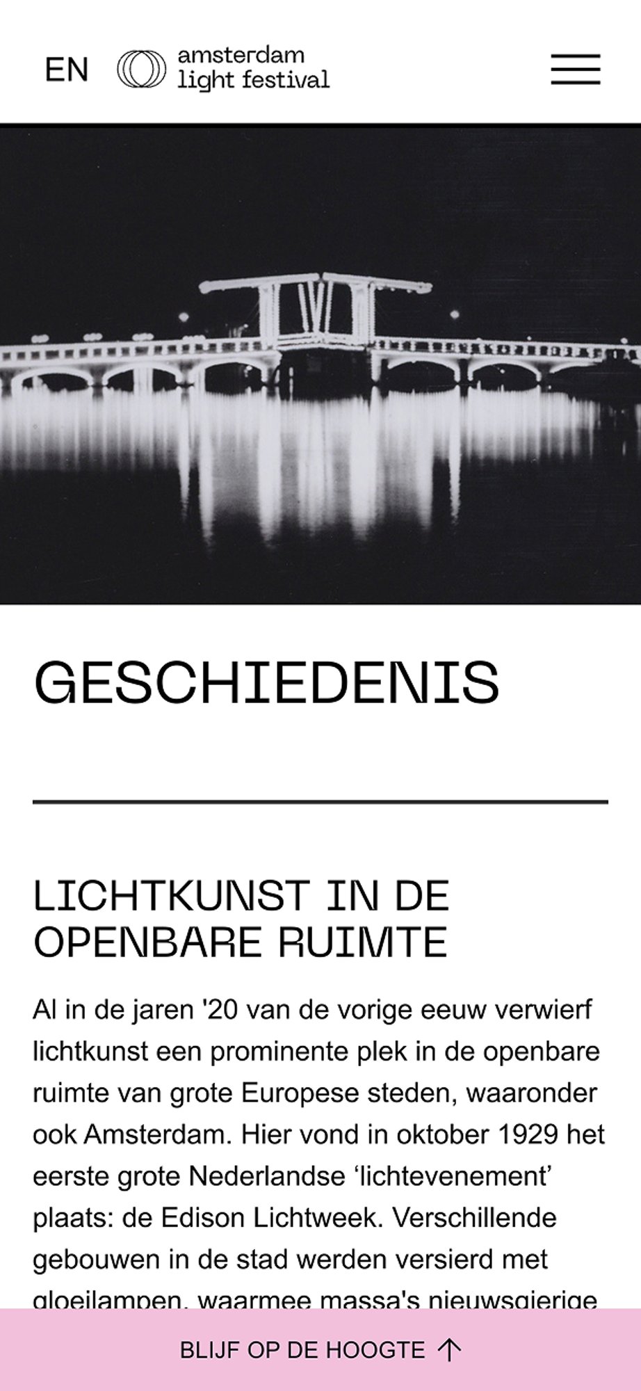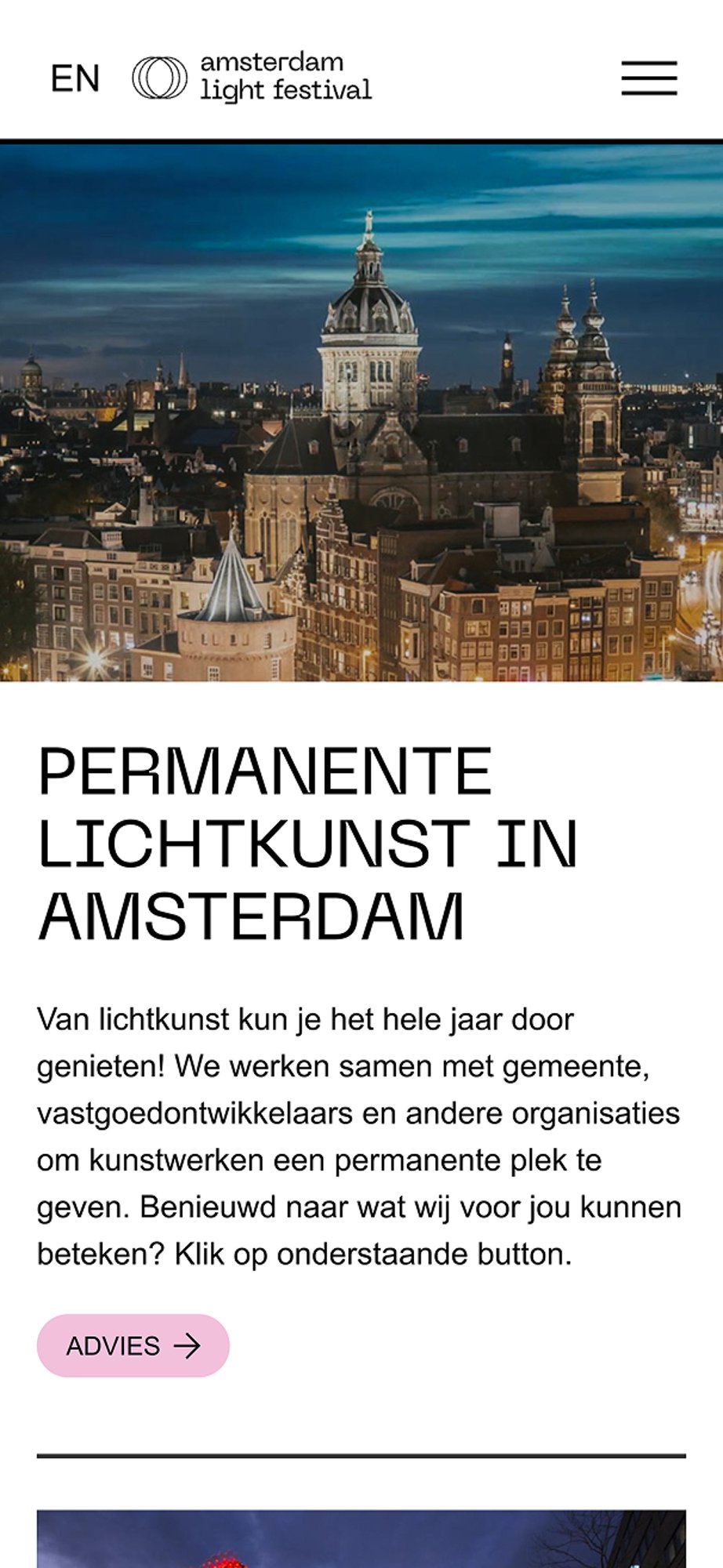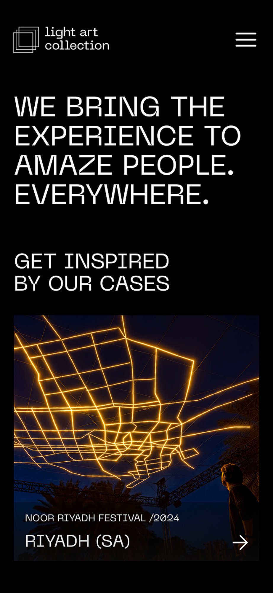 De websites zijn zo ontwerpen dat ze één ding centraal stellen: de lichtkunst zelf.