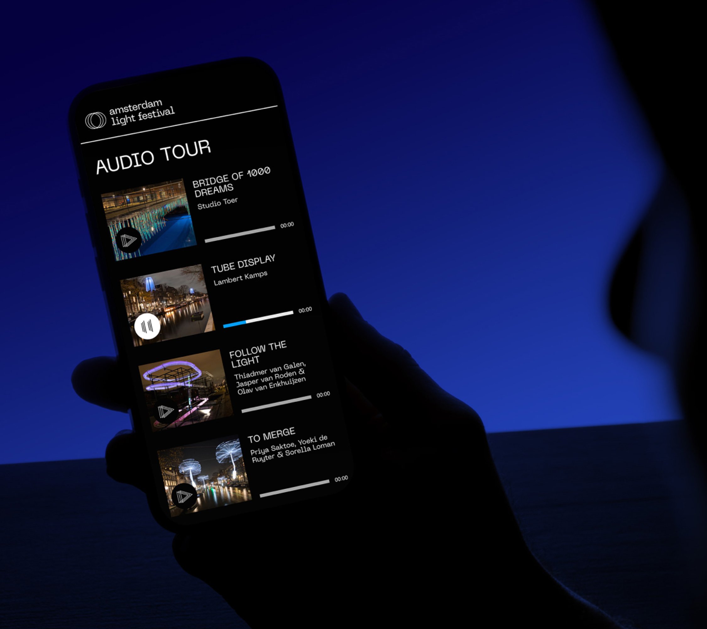 Om bezoekers nog dieper in de verhalen van de kunstwerken mee te nemen, integreerden we een audiotour in het platform. Via een interactieve kaart luisteren bezoekers bij elk kunstwerk naar context, achtergrond en inspiratie. De digitale gids laat het festival letterlijk spreken en verrijkt elke wandeling of vaarroute.