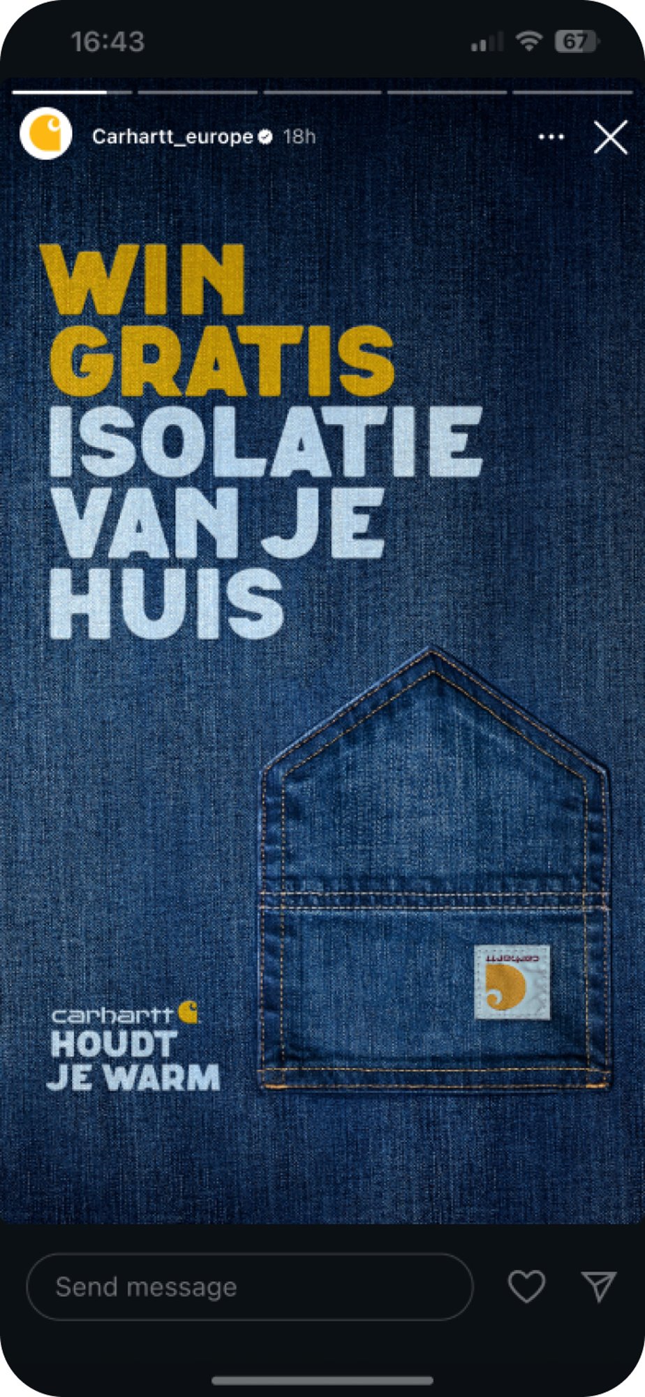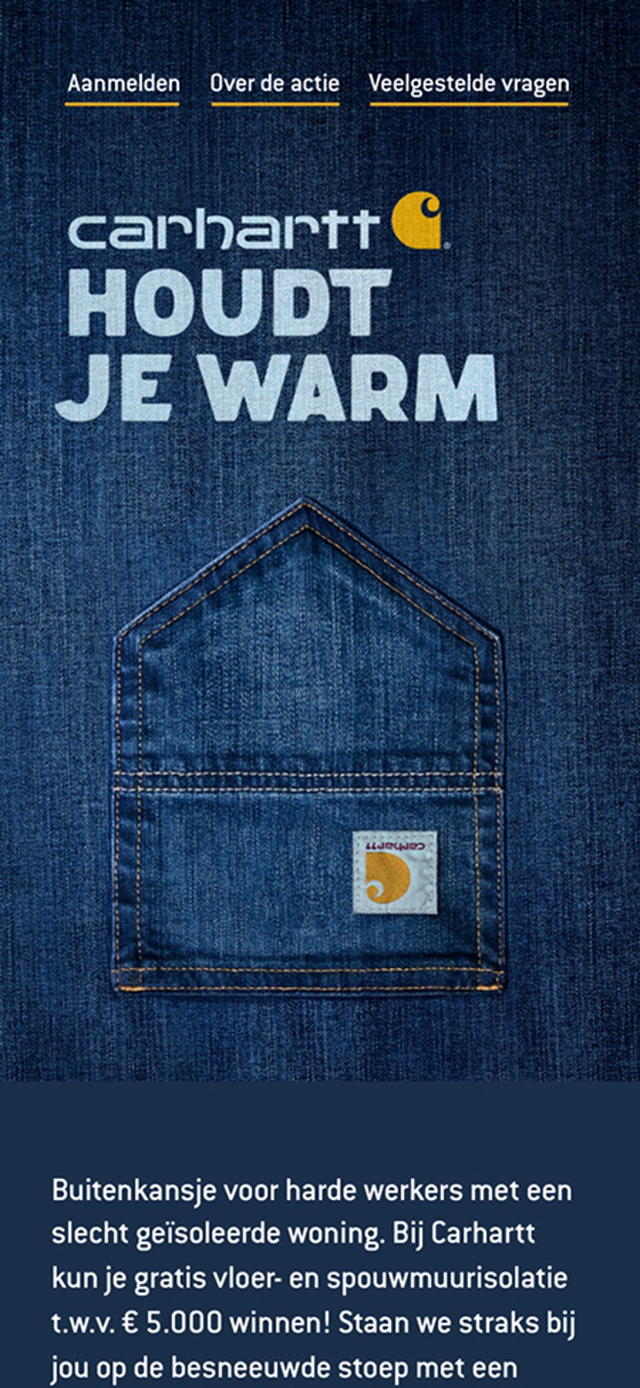 Midden in de energiecrisis van 2022 lanceerde Carhartt Workwear een opvallende winactie voor gratis woningisolatie. Zo reikte het merk, dat sinds 1889 harde werkers beschermt tegen weer en wind, eenmalig uit om niet alleen warmte op de werkplek, maar ook thuis te garanderen.